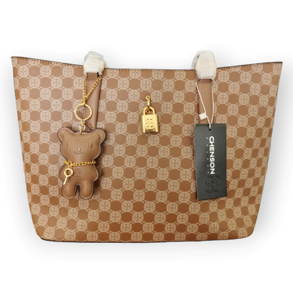 Com um aspecto rústico mas sem perder a essência da marca Chenson, essa belíssima bolsa trará um ar de elegancia em conjunto com a sofisticação à pessoa que tiver ela em mãos. Com um amplo espaço interno e diversos bolsos capazes de organizar todos os seus acessórios, ela também vem com um chaveiro de ursinho. Perfeito para o dia das mães!