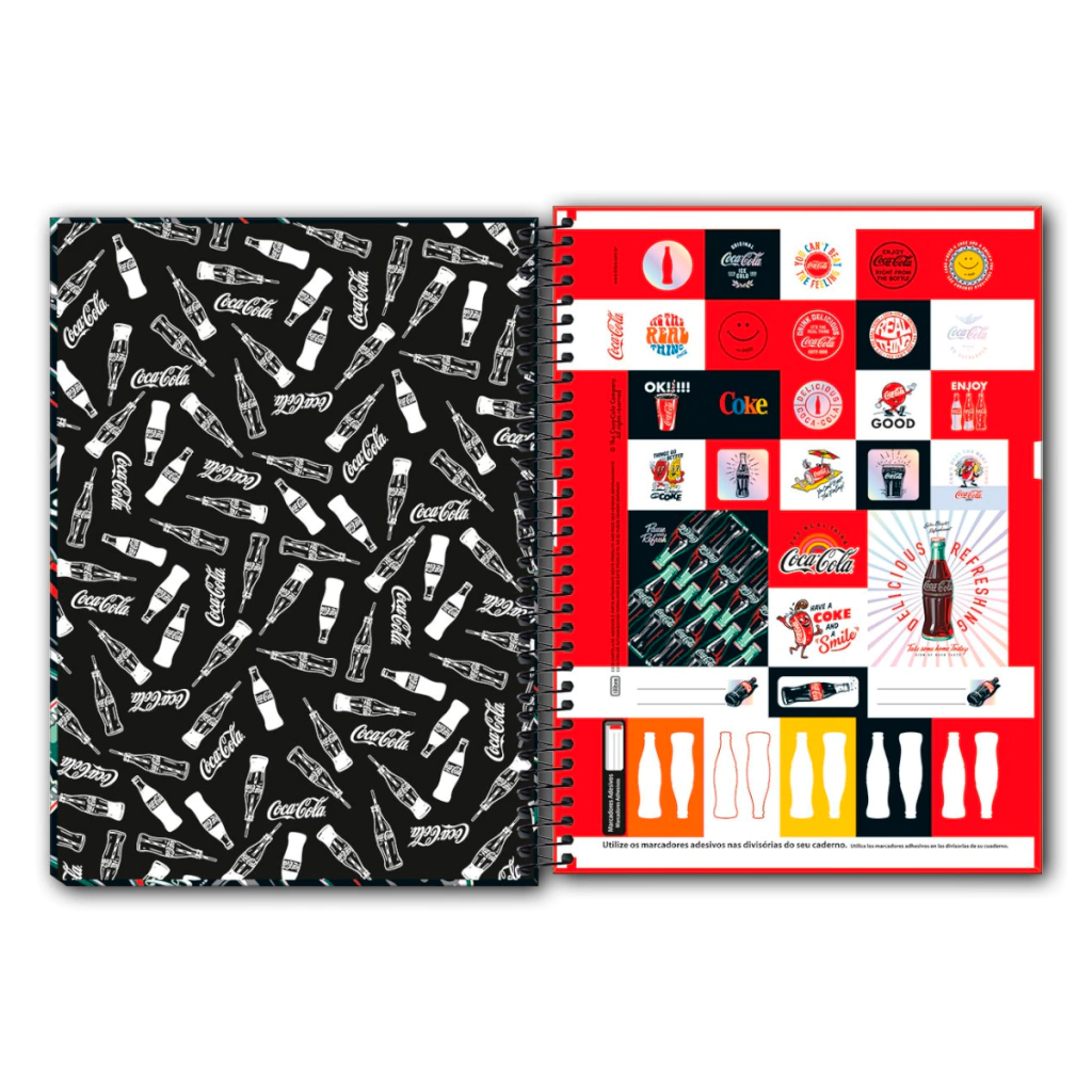 O Caderno Espiral Capa Dura Universitário 10 Matérias Coca-Cola 160 Folhas possui capa dura com acabamento metalizado, parte interna decorada, bolsa plástica para guardar trabalhos e anotações, folha com adesivos funcionais e folhas com Miolo Tilibra Connect. Ideal para o dia a dia na escola ou na faculdade.
