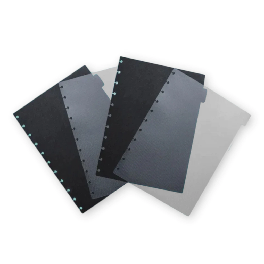 Para deixar o seu Caderno Inteligente® muito mais organizado, customizado e fácil de navegar, pode contar com as nossas divisórias básicas! Com duas divisórias em preto e duas transparentes, elas podem ser usadas para dividir matérias, assuntos, semestres e muito mais, e as abas facilitam ainda mais na hora de encontrar o que você está procurando dentro do caderno.