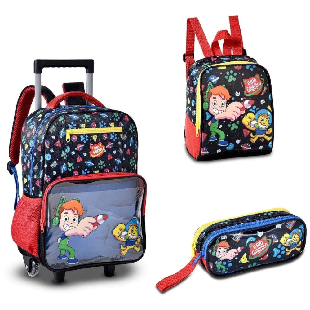 KIT MOCHILA RODINHA LANCHEIRA ESTOJO GATO GALACTICO - CLIO