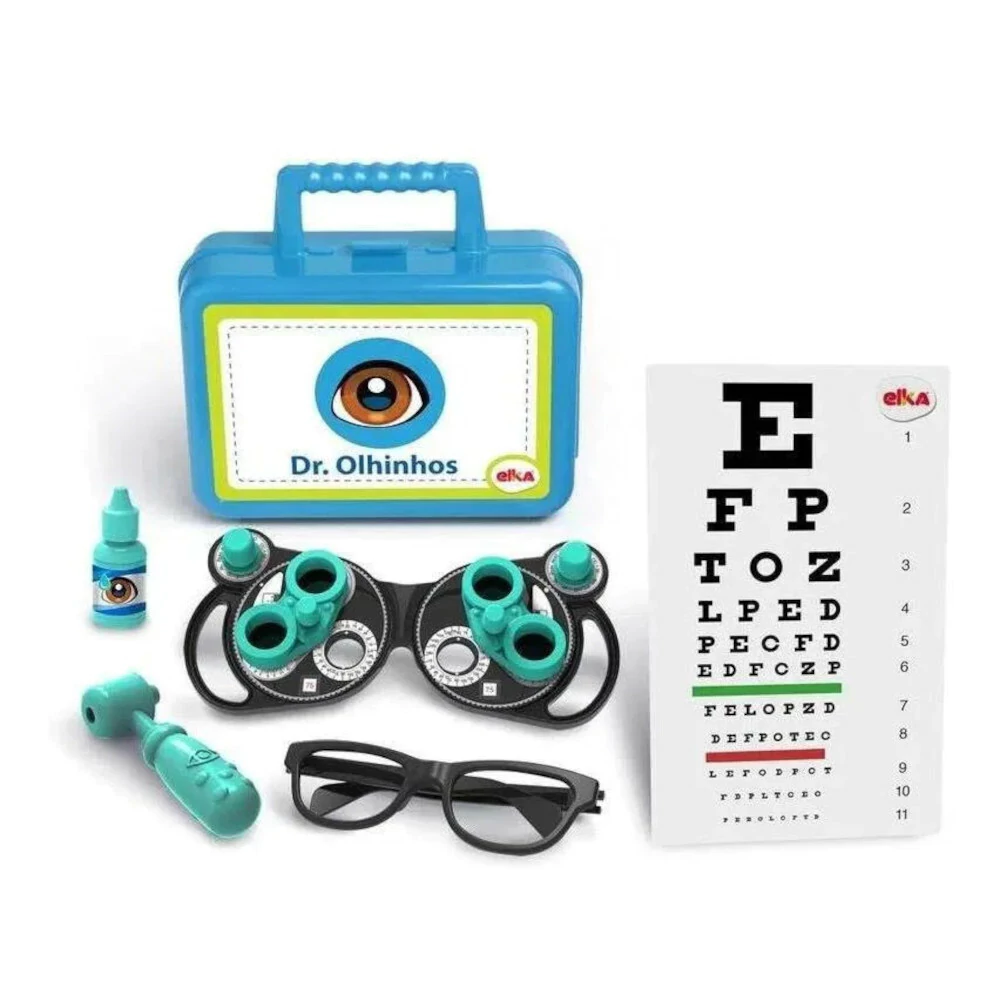 Kit com tudo que um oftalmologista precisa ter! Brincadeiras de faz de conta ajuda a criança a desenvolver habilidades como a criatividade, empatia e competências sociais.