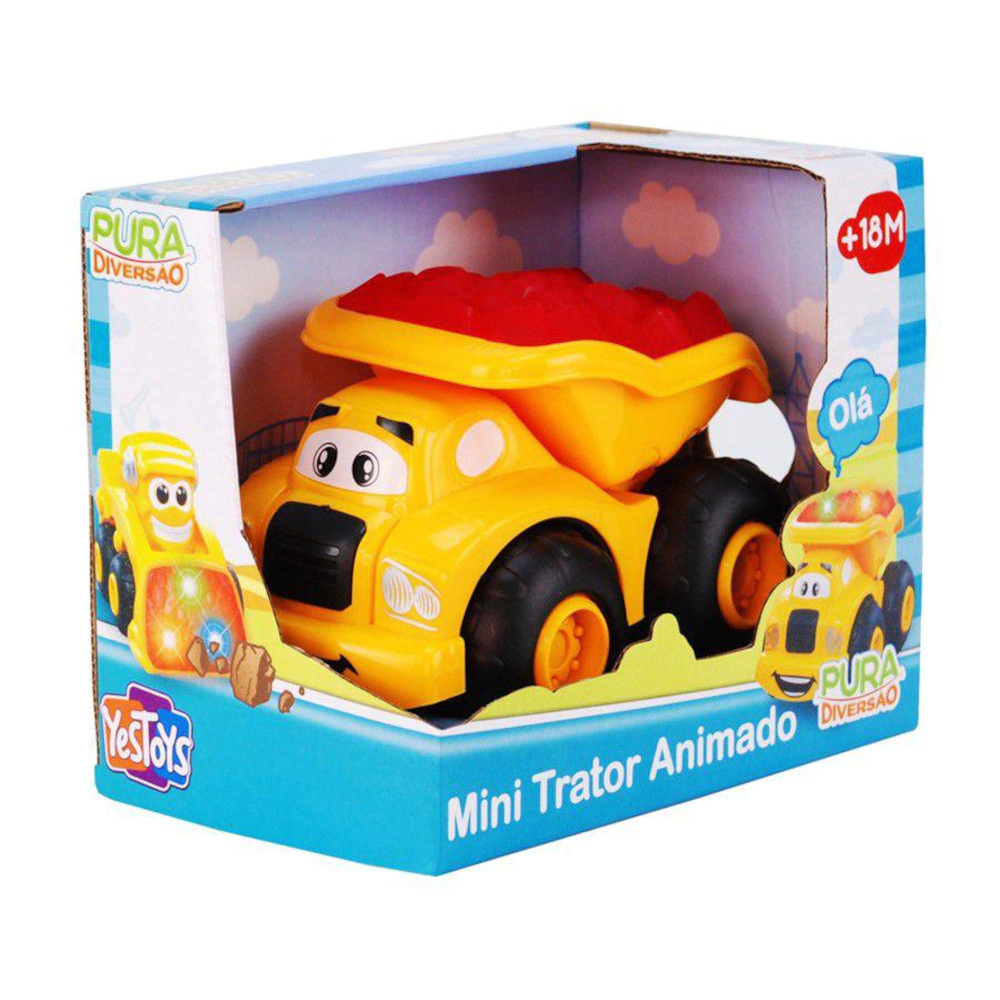 Os Novos Brinquedos Pura Diversão da Yes Toys são perfeitos para auxiliar no desenvolvimento e divertimento do seu pequeno. Os pequenos adorarão brincar e se divertir com esse Mini Veículo Animado da Yes Toys. Ele possui um lindo design e emite diversos sons e luzes ao apertar o botão na parte traseira. São 2 modelos de caminhão / trator, com ilustração de rostos animados. Possui luzes, sons animais e rodas livres para ser movimentado livremente.