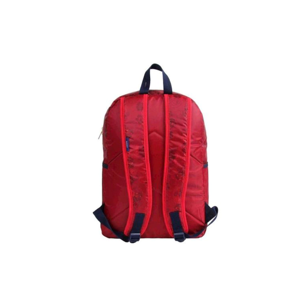 Mochila de costas feminina, na cor vermelho, com estampa floral da personagem "A Bela e a Fera"